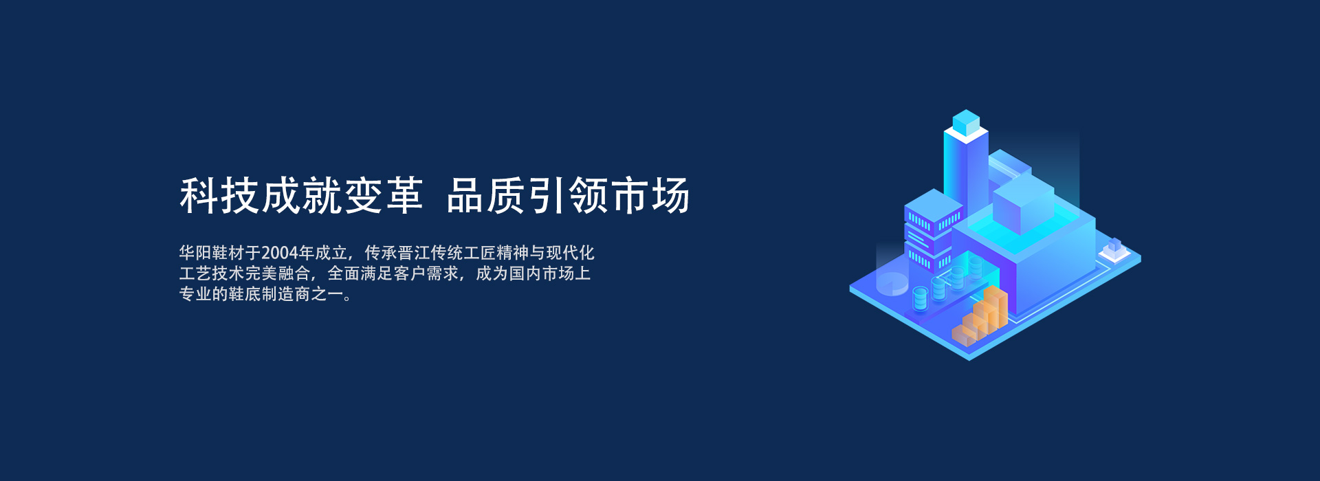 華陽(yáng)鞋材于2004年成立,傳承晉江傳統(tǒng)工匠精神與現(xiàn)代化工藝技術(shù)完美融合,全面滿足客戶需求,成為國(guó)內(nèi)市場(chǎng)上專業(yè)的鞋底制造商之一。多年來(lái),華陽(yáng)鞋材自主研發(fā)及引進(jìn)最先進(jìn)智能生產(chǎn)設(shè)備,致力于生產(chǎn)EVA一次(IP)成型鞋底、EVA二次(MD)成型鞋底、TPR鞋底、RB(橡膠)鞋底,TPU鞋底及配件及底材組合。